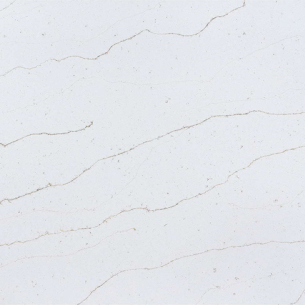Calacatta Celeste features a creamy white background with bold, flowing gray veining that brings the elegance of natural marble to life. This durable, non-porous engineered quartz resists stains and scratches, requiring no sealing.