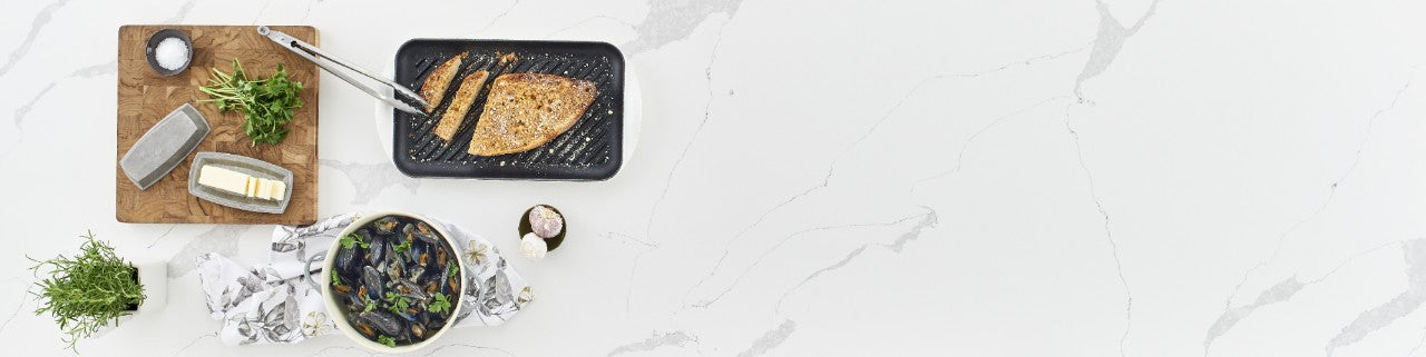 Quartz is often chosen when low maintenance and consistent performance are the highest priorities. Because the material is engineered, quartz surfaces are non-porous and resist staining without requiring sealing. Quartz is commonly used in kitchens where durability, predictable surface behavior, and minimal upkeep are important.