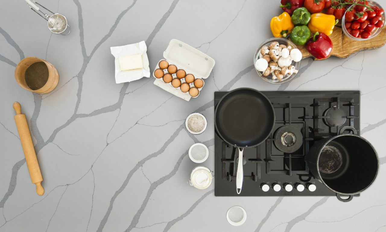 Quartz is often chosen when low maintenance and consistent performance are the highest priorities. Because the material is engineered, quartz surfaces are non-porous and resist staining without requiring sealing. Quartz is commonly used in kitchens where durability, predictable surface behavior, and minimal upkeep are important.