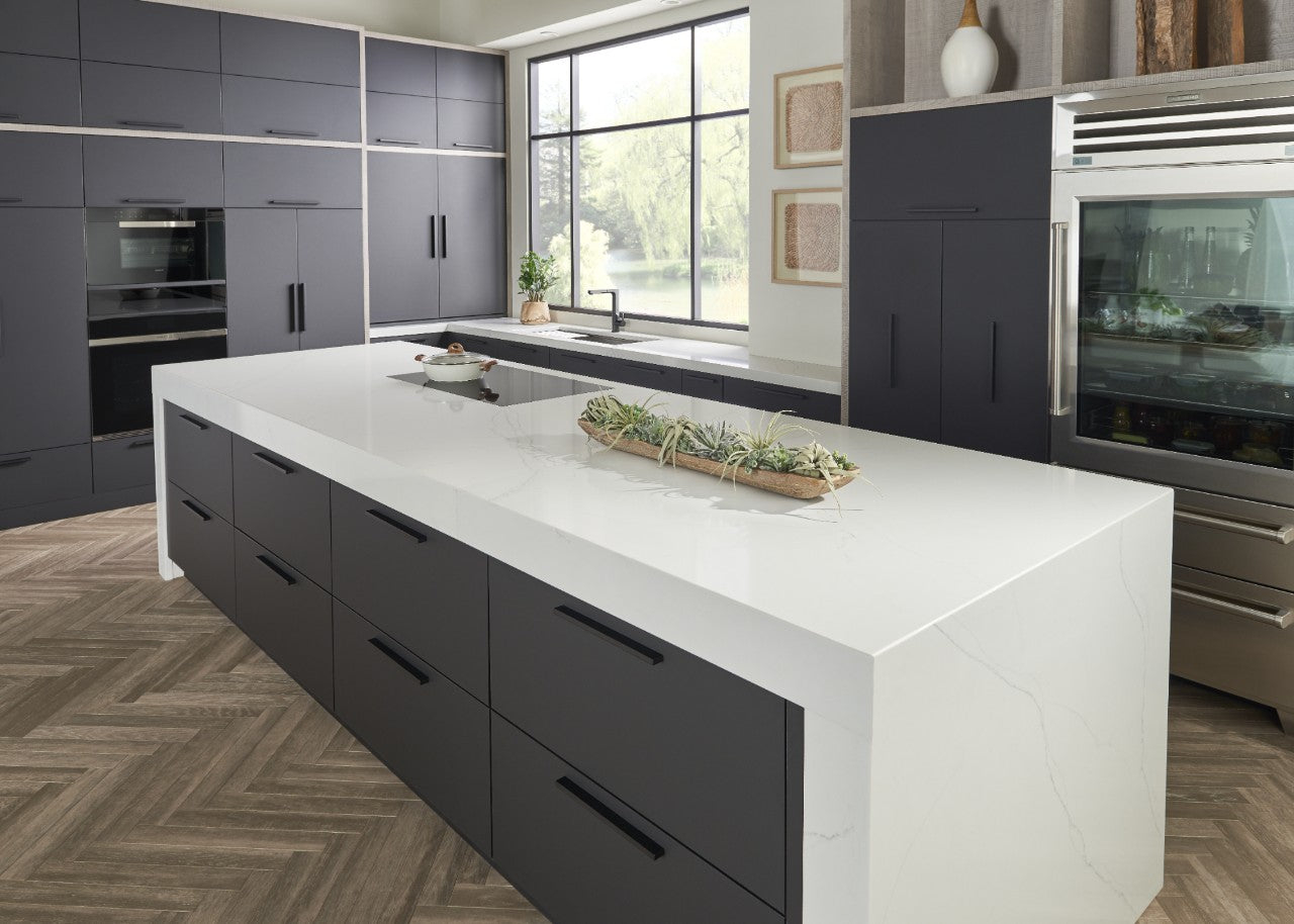 Inspired by the luxury look of Italian marble, Calacatta Tervi Quartz is not only gorgeous, but it’s also durable, stain-resistant, and easy to clean, making it perfect for busy families. Featuring a warm white backdrop and delicate through-body veining, this look is the essence of elegance for white quartz countertops, floors, islands, shower surrounds, backsplashes, and more. Create the kitchen of your dreams with this sought-after quartz.