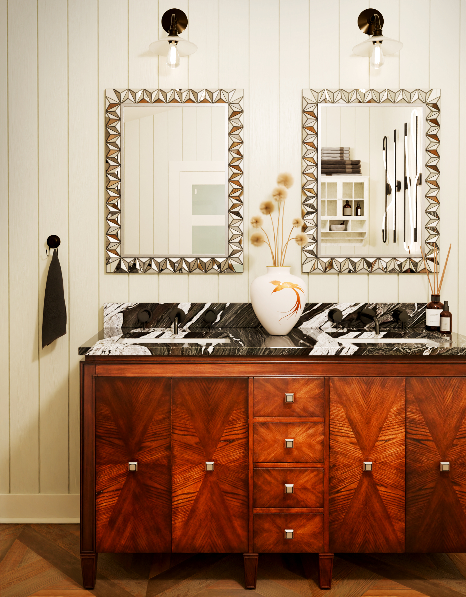 Winter Wood granite features flowing black ripples with wide crystalline veins. Elevate your custom countertop, backsplash or bathroom project with FabQuartz. Call to talk with a stone design expert today.